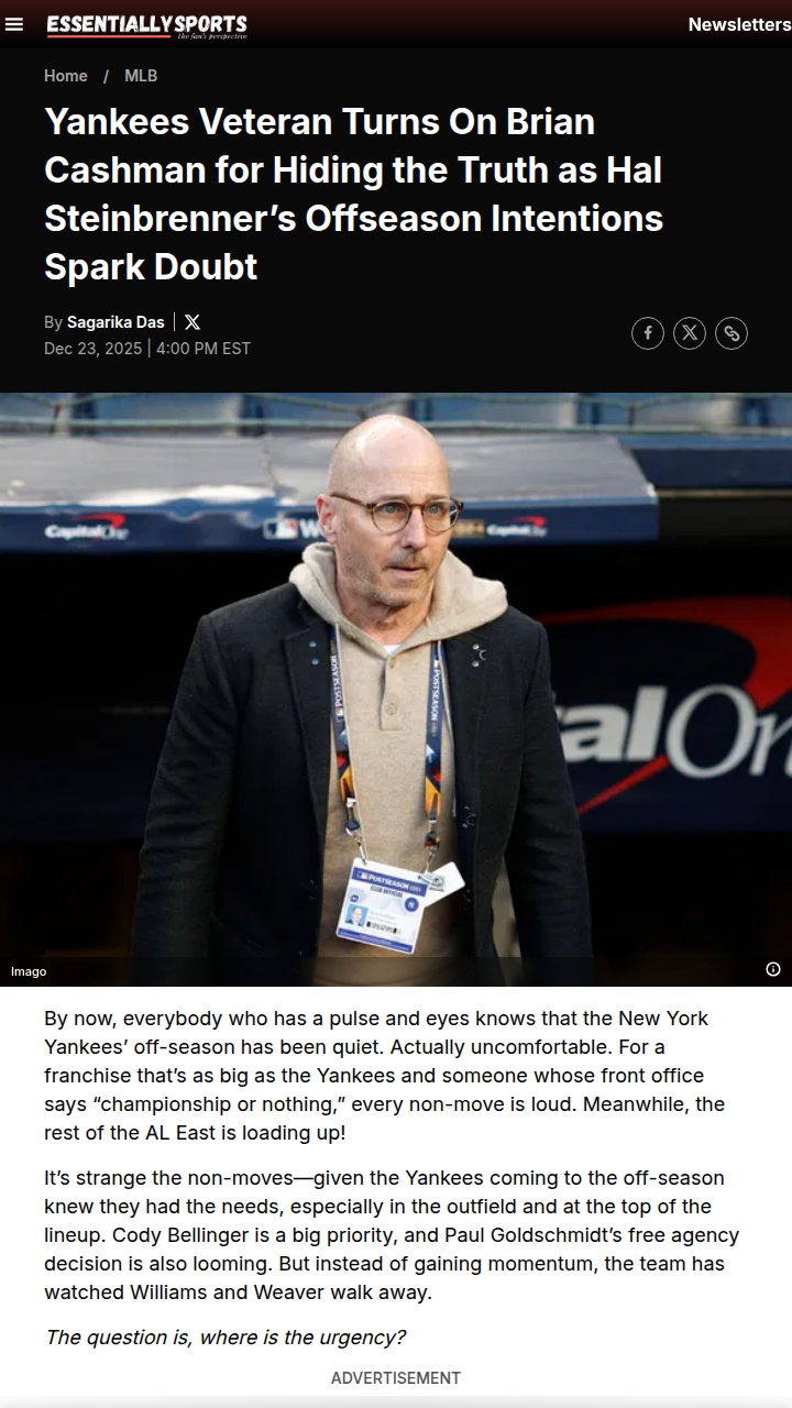 Renee Ramirez+FollowYankees’ quiet offseason has fans worriedAnother year, another round of head-scratching moves from the Yankees’ front office. With Brian Cashman reportedly sticking to a “copy and paste” strategy for 2026, even former players are questioning if the team is doing enough to support Aaron Judge in his prime. Cody Bellinger’s future is still up in the air, and the only rumored addition is Austin Hays—not exactly the blockbuster move fans hoped for. Are the Yankees risking another wasted season by not addressing their glaring flaws? What do you think it’ll take for this team to finally get over the hump? #Sports #Baseball #Yankees00Share