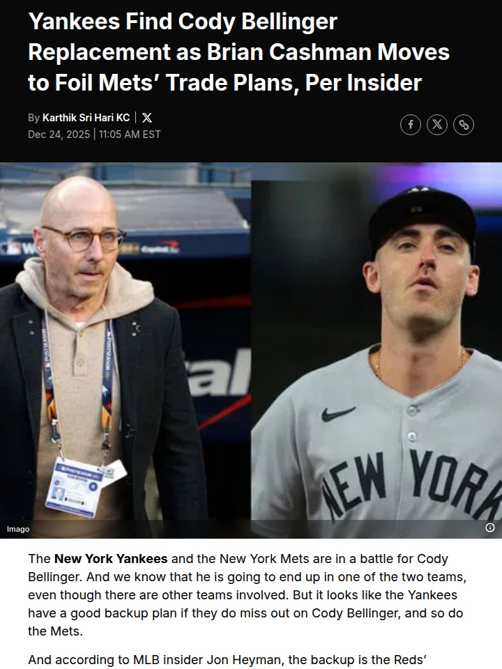 terrysharon+FollowYankees shake up offseason with backup planThe Yankees aren’t just waiting around for Cody Bellinger—they’ve got their eyes on Austin Hays as a strong backup if the Mets swoop in first. This insider move shows how serious the Bronx Bombers are about boosting their outfield, no matter what. Even when their top target is at risk, the Yankees’ front office is hustling to keep the team competitive. What do you think—would Hays be a solid fit, or should the Yankees go all-in for Bellinger? Let’s hear your take on the rivalry and these bold offseason moves! #Sports #Baseball #Yankees02Share