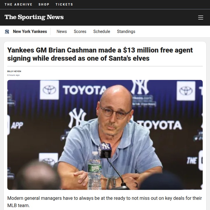 Tammy Sellers+FollowCashman’s $13M Elf Deal: Yankees MagicOnly in Yankees Universe: Brian Cashman, aka the Bronx Braintrust, once inked Matt Holliday to a $13M deal while literally hanging off a building in an elf suit! Talk about multitasking under pressure. Holliday’s numbers weren’t MVP-level, but imagine if he’d signed elsewhere and torched us instead. Sometimes, you’ve got to get festive to keep the Pinstripes in the hunt. That’s the wild world of MLB GMs! #Sports #Baseball #Yankees00Share