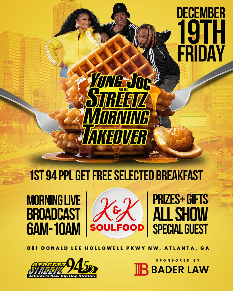 Charles Brown+FollowFree breakfast & live radio vibes hit AtlantaAtlanta’s Westside is about to wake up with a serious treat—Yung Joc & The Streetz Morning Takeover are going live from K&K Soulfood, and the first 94 folks through the door get a free Southern breakfast! It’s not just about the food, though. Expect live energy, special guests, giveaways, and that unbeatable Atlanta community spirit. Whether you’re a regular at K&K or just love a good morning show, this is the kind of event that brings neighbors together. Who’s pulling up early for free breakfast and some hometown fun? #Entertainment #Atlanta #StreetzMorningTakeover00Share