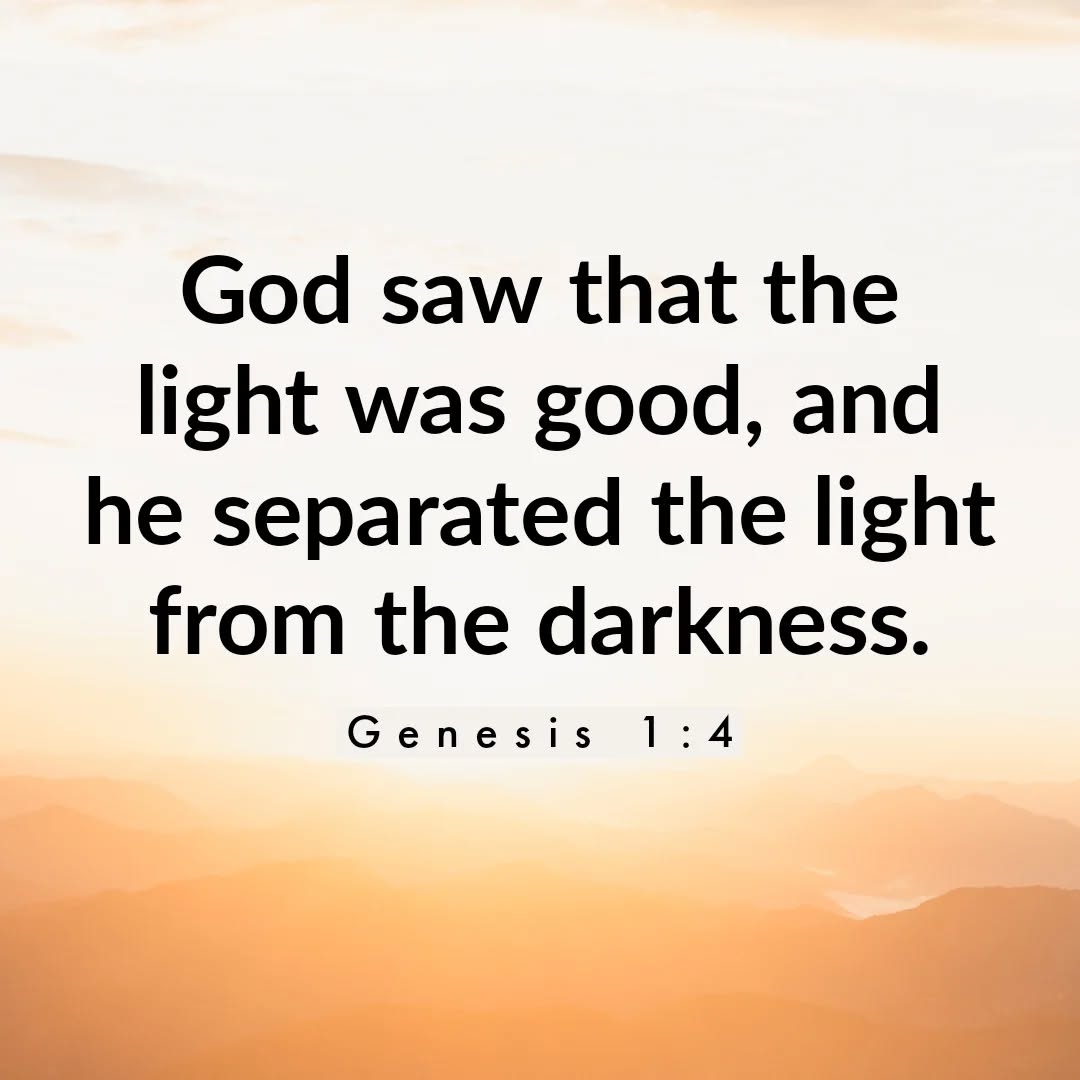 leealyssa+FollowType "Amen" if you agree😇 (Follow @bible_verses365_ for daily verses!📖) Genesis 1:4 NIV [4] God saw that the light was good, and he separated the light from the darkness. #bibleverse #dailymotivation #dailybibleverse #bible #god jesus christ christian faith pray prayer lord blessed worship believe trust trustgod joy holyspirit holy bible_verses365_00Share