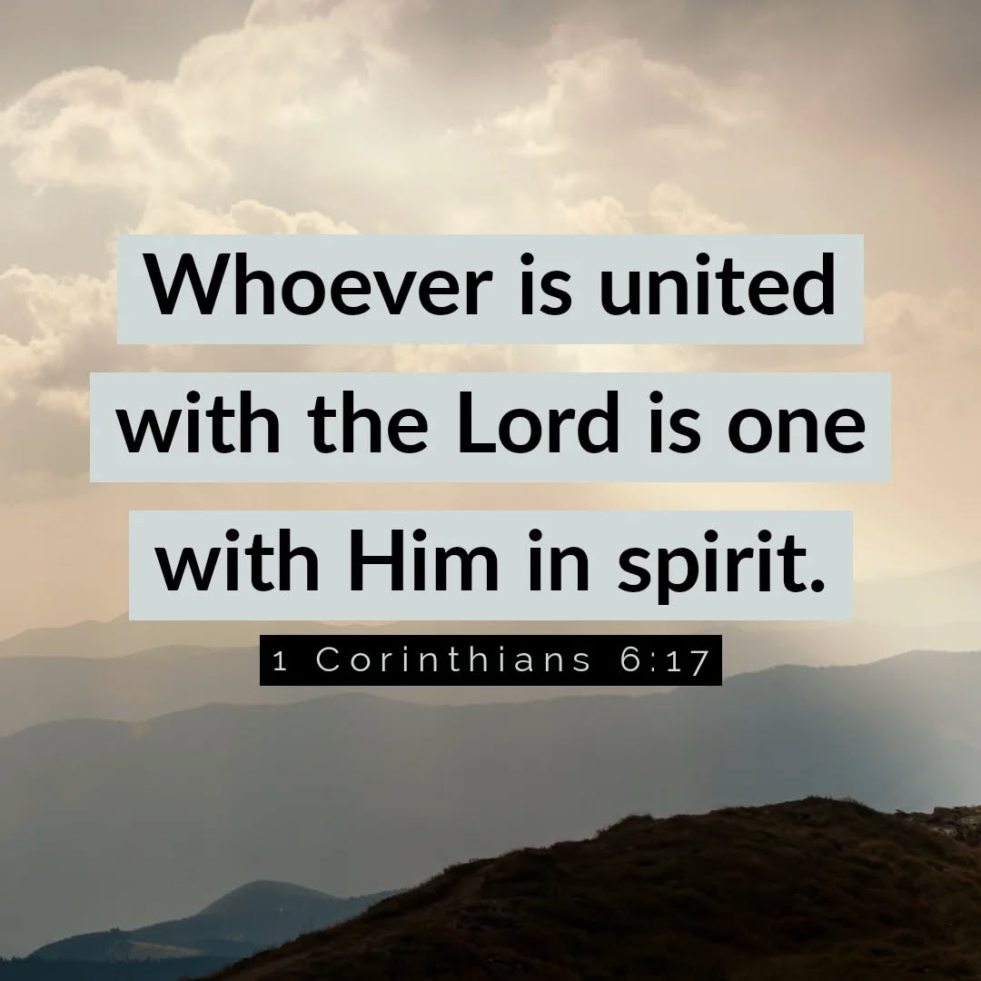 leealyssa+FollowType "Amen" if you agree😇 (Follow @bible_verses365_ for daily verses!📖) 1 Corinthians 6:17 NIV [17] But whoever is united with the Lord is one with him in spirit. #bibleverse #dailymotivation #dailybibleverse #bible #god jesus christ christian faith pray prayer lord blessed worship believe trust trustgod joy holyspirit holy bible_verses365_00Share
