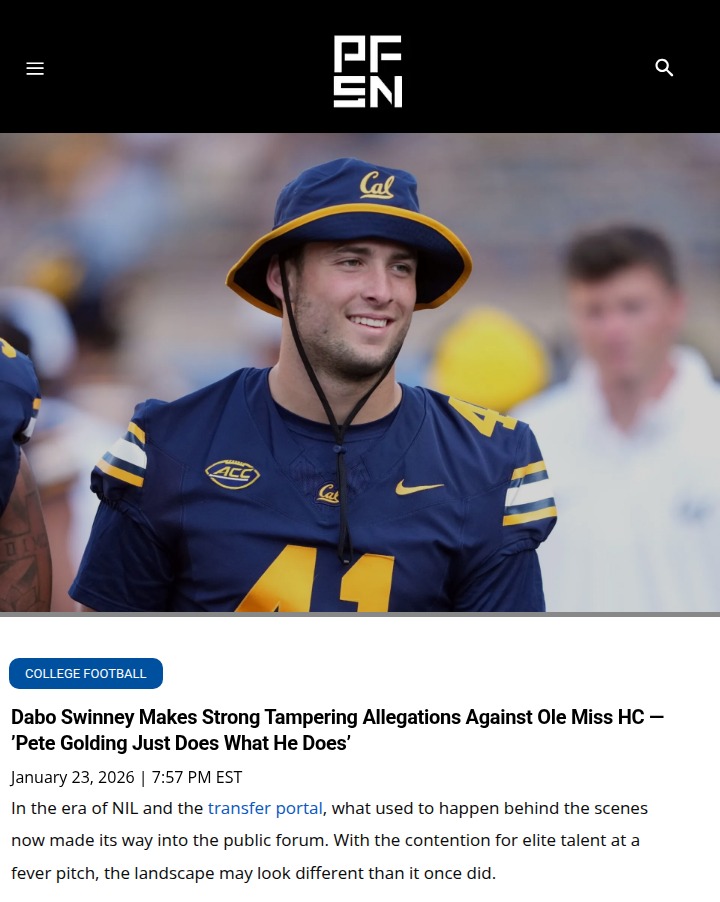 phughes+FollowDabo Calls Out Ole Miss Over Ferrelli FlipWow, things are heating up in the NIL era! Dabo Swinney just accused Ole Miss HC Pete Golding of tampering after redshirt freshman LB Luke Ferrelli flipped to the Rebels. Swinney laid out a detailed timeline, even mentioning big money offers and bringing up Trinidad Chambliss and Jaxson Dart. With Ferrelli likely starting for Golding’s D, will the NCAA or AFCA actually step in? This could be a game-changer for transfer rules. Thoughts on whether this rivalry just got personal? #Sports #Football #Clemson00Share