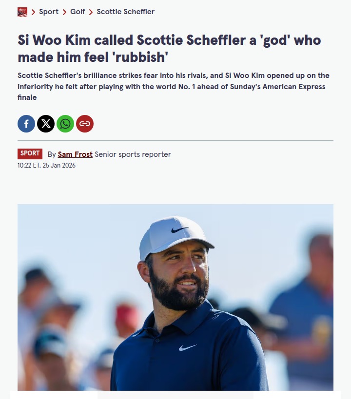 Tammy Davenport+FollowSi Woo Kim faces off with Scheffler at AmexSi Woo Kim is leading The American Express heading into Sunday, but Scottie Scheffler is just one shot behind—and Kim admits Scheffler’s game is so good, it once made him feel “like rubbish.” After seeing Scheffler dominate last season, Kim joked it was like playing against a “god.” Now, with both in top form and friends off the course, the final round at PGA West is set for serious drama. Who’s your pick to take the title—Kim’s comeback or Scheffler’s hot streak? Let’s hear your thoughts! #Sports #Golf #AmericanExpress00Share