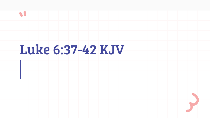 Judge not, and ye shall not be judged: condemn not, and ye shall not be condemned: forgive, and ye shall be forgiven: [38] Give, and it shall be given unto you; good measure, pressed down, and shaken together, and running over, shall men give into your bosom. For with the same measure that ye mete withal it shall be measured to you again. [39] And he spake a parable unto them, Can the blind lead the blind? shall they not both fall into the ditch? [40] The disciple is not above his master: but every one that is perfect shall be as his master. [41] And why beholdest thou the mote that is in thy brother's eye, but perceivest not the beam that is in thine own eye? [42] Either how canst thou say to thy brother, Brother, let me pull out the mote that is in thine eye, when thou thyself beholdest not the beam that is in thine own eye? Thou hypocrite, cast out first the beam out of thine own eye, and then shalt thou see clearly to pull out the mote that is in thy brother's eye.