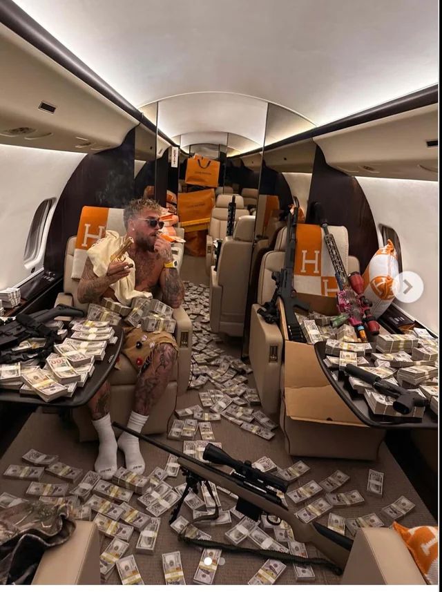 Is this AI?+FollowMy friend sent me this Jake Paul flex photo. Is this AI?At first glance, I was convinced it was 100% AI. Something about the way the bags are stacked in the background seems implausible and the gun in the foreground doesn't look properly balanced. However after digging through the comments, it turns out the plane might be real and the guns are custom-made by a specific shop, but the "fake" energy is still strong... Maybe I’m just getting paranoid about AI, though. What do you think? #isthisAI #jakepaul #fakeflex #lifestyle 00Share