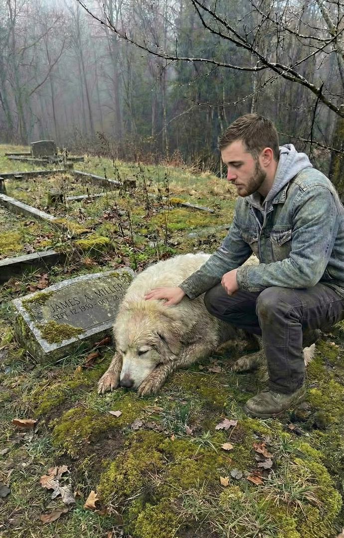 I was going to take him back to the shelter on Monday. I hate admitting that, but I was done. His name is Sarge. He’s a 110-pound Pyrenees mix, and for three weeks he’s been a nightmare. He doesn’t chew. He doesn’t bark. He escapes. Six-foot fence? He dug under it. Locked gate? He figured out the latch. Every day while I was at work, he’d break out. Animal control would find him miles away—dirty, exhausted, sometimes limping. The fines piled up. So did the fear. “He just doesn’t want to be here,” I told my sister. “He’s a runner.” Yesterday was Saturday. I was home. Around 10:00 AM, Sarge began pacing. Whining. Scratching at the door. I let him out—but this time, I followed him. I had to know. He didn’t run to a park. He didn’t chase anything. He put his nose to the ground and walked with quiet determination. He crossed a highway. Cut through thorns that shredded my jacket. Finally, he stopped at a cemetery and slipped through a broken fence. I climbed after him. In the far back corner, where no one visits anymore, Sarge lay flat in front of a small, neglected headstone. Calm. Still. At peace. The name on the stone belonged to an old man. That’s when I understood. Why the shelter struggled to place him. Why he was labeled “a runner.” He wasn’t running away. He was running back. For years, he’d been making this walk. Rain or snow, heat or cold. A standing appointment. I sat beside him in the dirt. He sighed deeply and rested his heavy head on my leg. I’m not taking him back on Monday. I bought a heavy harness and a 20-foot lead. If he needs to visit his dad, he won’t do it alone anymore. We’ll walk there together. Every Saturday. He’s not an escape artist. He’s just loyal—to a fault. #doglover #loyalty #LoyaltyOverEverything #herodog #animallover