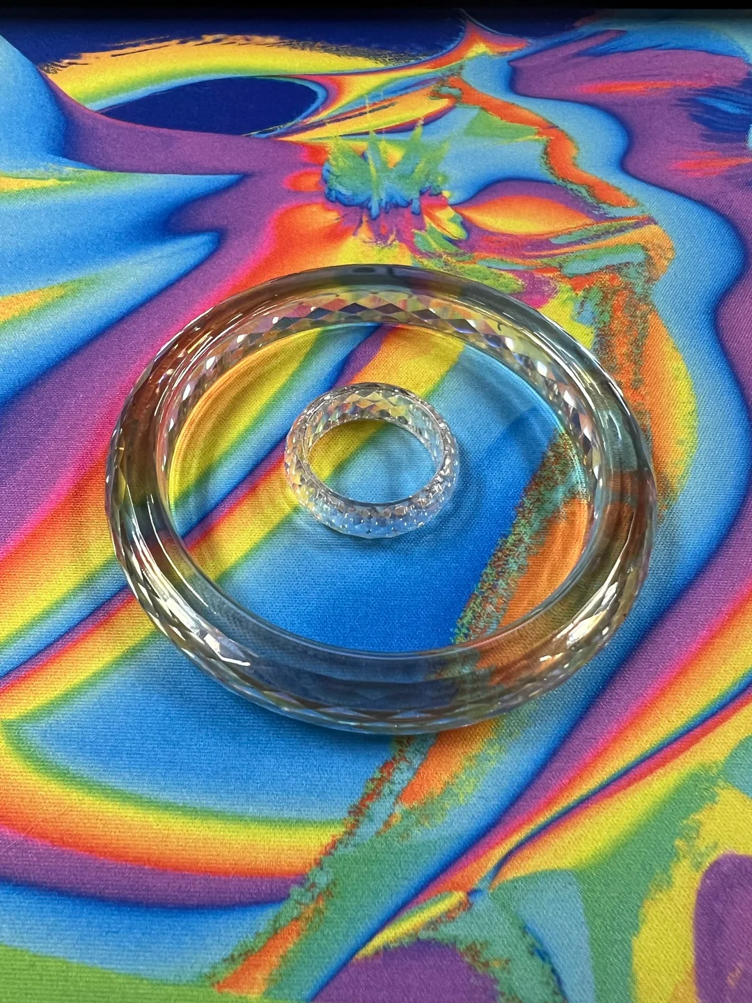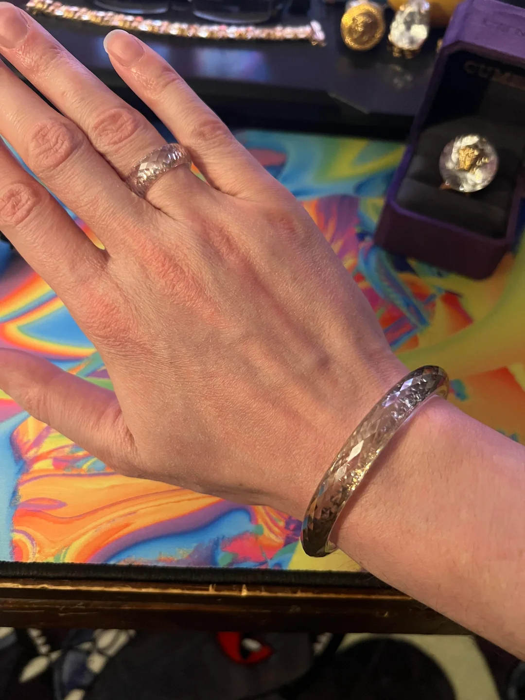 james90+FollowMy 227ct solid Moissanite bangle finally arrived!!It's a gorgeous thing, but getting it on was a fight. I ordered a 61mm internal diameter and ended up with a 59.69mm one, and that small difference is huge with a solid piece. I had to use lotion and accidentally learn a lot about old jade bangle tricks just to wrestle it over my wrist bones. Thankfully, once it's on, the fit is great—the perfect three-finger fit. I waited all year for a deal and snagged this monster from PTX Holycome for $275 shipped. I know the photos look like plastic, so I promise a video in direct sunlight as soon as I can. #Moissanite #Bangle #JewelryReview 00Share