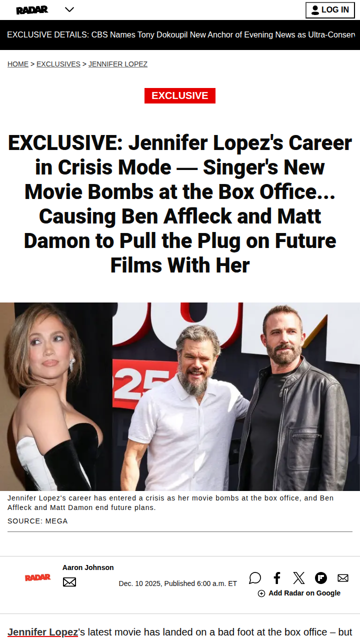 Greg Cardenas+FollowJ.Lo's Movie Flop Shakes Up Ben & Matt 🎬Jennifer Lopez’s new film just tanked at the box office, but the real shocker? Ben Affleck and Matt Damon—who backed the project—are reportedly done working with her. Insiders say the movie’s poor performance has the duo rethinking their studio’s direction, ditching J.Lo’s Oscar dreams for more bankable hits. Is this the end of their creative trio? Fans are divided! #Entertainment #Movies #JenniferLopez10Share