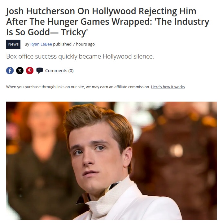 Kelsey Cook+FollowJosh Hutcherson’s Post-Hunger Games Snub 😳Wild how Josh Hutcherson went from Peeta in The Hunger Games to suddenly being iced out by Hollywood. He admitted he never learned to handle rejection because he was always working, then after the franchise ended, the offers just stopped. Fans are debating if the industry did him dirty or if it’s just how fame works. Would you want him back in the Hunger Games universe? #Entertainment #Movies #JoshHutcherson00Share