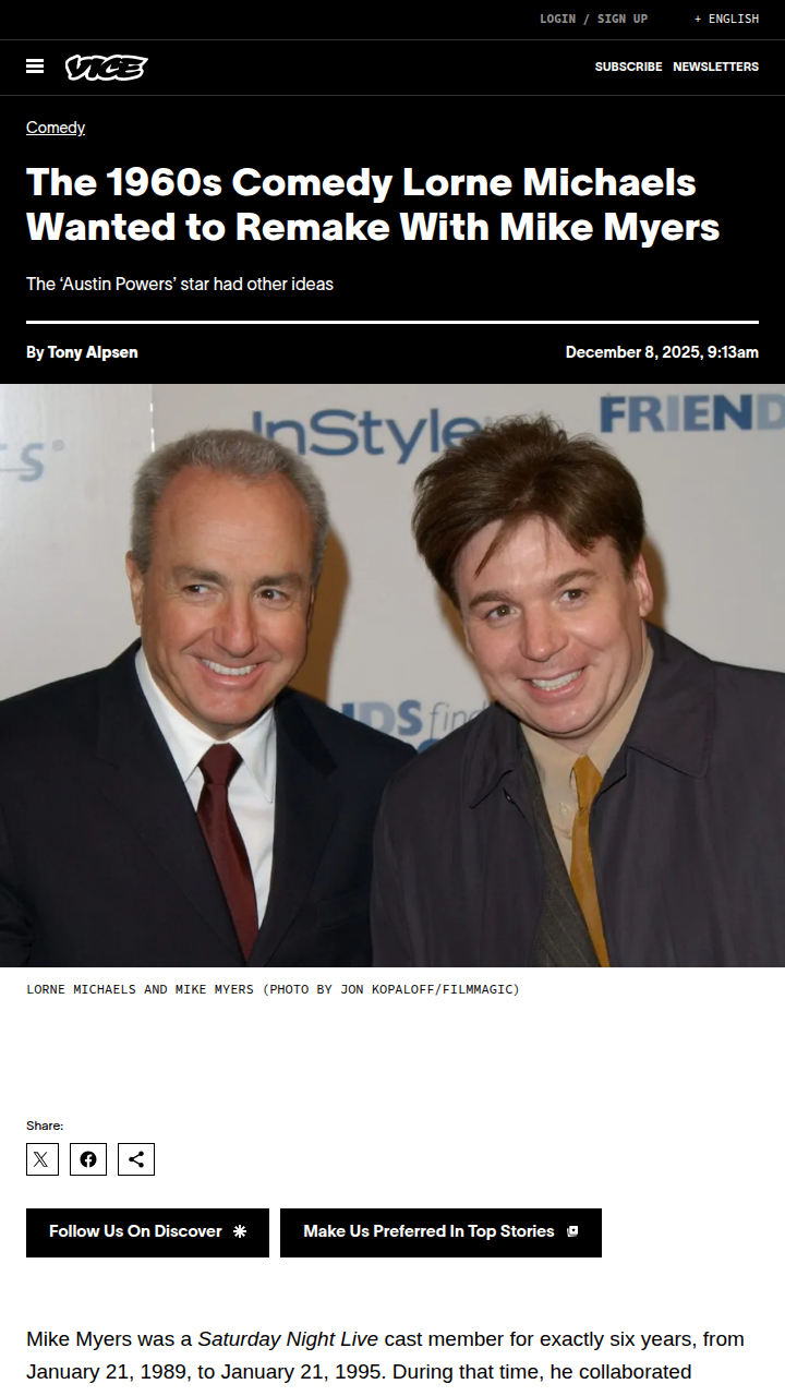 April Ferguson+FollowLorne Michaels’ Wild Mike Myers Movie Pitch 🤯Did you know Lorne Michaels actually wanted Mike Myers to remake The Graduate instead of making Wayne’s World? Total plot twist! Myers flat-out refused, saying the original was perfect and shouldn’t be touched. This whole behind-the-scenes drama just proves how much Myers values originality—plus, it makes you wonder what could’ve happened if he’d said yes! #Entertainment #Movies #MikeMyers00Share