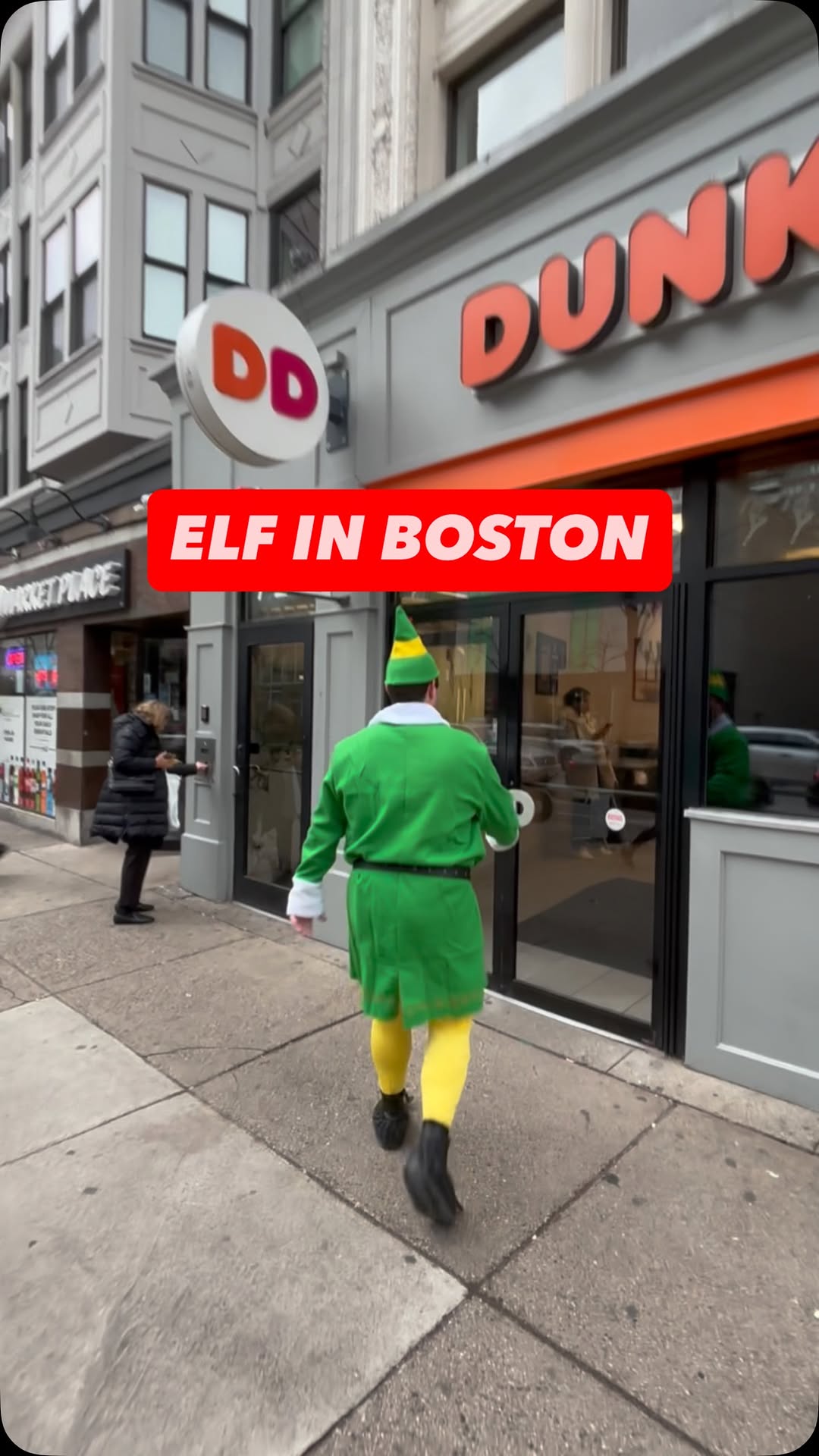 Kelsey Cook+FollowBuddy the Elf takes over Boston streetsBuddy the Elf just got a Boston makeover! Local creator Colton Cunningham went viral by dressing up as Buddy and hitting up iconic city spots—from congratulating Dunkin’ customers on their “World’s Best Cup of Coffee” to sliding down the City Hall cop slide and even dousing a lobster roll in maple syrup. His playful twist on the classic holiday movie brought smiles (and some embarrassment for his cameraman) all over town. Would you join Buddy for a syrup-topped Guinness, or is that crossing the line? What Boston landmark should he visit next? #Entertainment #Movies #Boston00Share