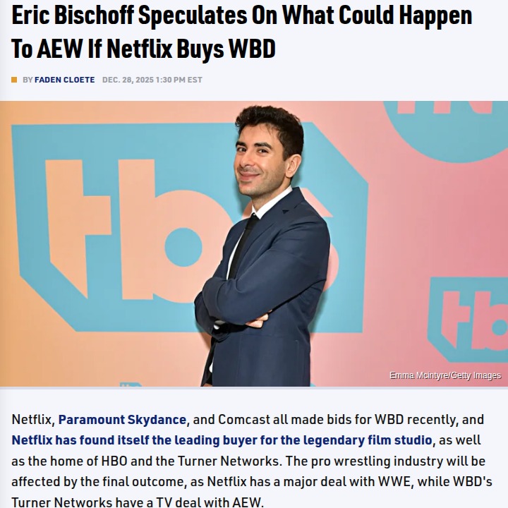 Eddie Deleon+FollowBischoff Breaks Down AEW's Netflix FutureInteresting take from Easy E on the latest '83 Weeks'—with Netflix leading the charge to buy WBD, Bischoff says AEW fans shouldn’t expect any sudden moves. The current TV deal keeps the Elite safe for now, but with WBD likely to be broken up, Tony Khan’s crew could be facing some real uncertainty when that contract ends. Bischoff calls a full Netflix takeover 'fantasy booking,' but warns that AEW needs to keep its books healthy for whatever comes next. Thoughts? #Sports #AEW #Netflix10Share