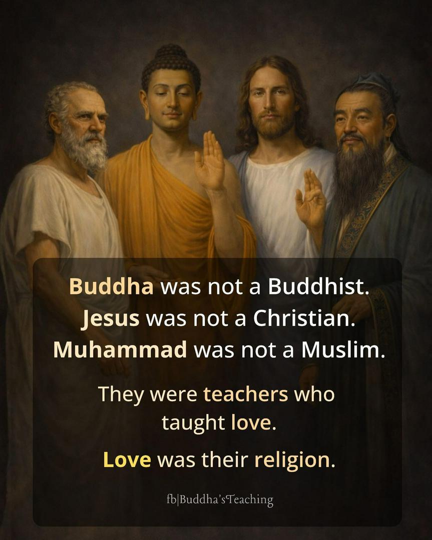 justme +FollowGreat teachers did not come to create divisions. They came to remind humanity of compassion, kindness, and love. Over time, people formed religions, traditions, and labels around their teachings. But the heart of their message was simple. Live with love. Treat others with compassion. Walk with humility and awareness. Names and identities may differ, but the essence remains the same. When love becomes the center of our actions, we begin to understand the true spirit behind every great teaching. . . . . #buddha #wisdom #religion #kindness #love #jesus #christianity #peace20Share