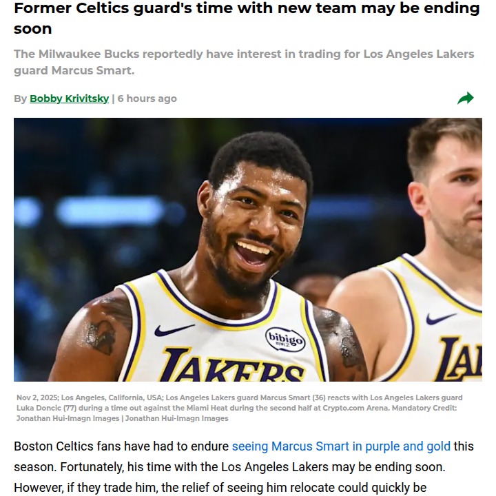 summersivan+FollowBucks Eye Smart Amid Giannis UncertaintyCeltics fans, it looks like the Marcus Smart-Lakers era could be short-lived. Rumor has it the Bucks are interested in bringing the defensive bulldog to Milwaukee, hoping to steady the ship while the Greek Freak is sidelined. With Cream City tumbling in the standings and Giannis’ future up in the air, could Smart be the missing piece—or just a stopgap? Would you rather see Smart stay in LA with King James or suit up for the Bucks? #Sports #Basketball #MarcusSmart00Share