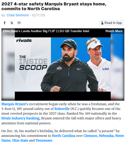 glen25+FollowMarquis Bryant chooses UNC over national powersMarquis Bryant, one of the nation’s top 2027 football prospects, just made a huge call—he’s staying in North Carolina and committing to UNC, turning down offers from Clemson, Ohio State, and more. Bryant says it’s not just about football; it’s about family, community, and the trust he’s built with the new coaching staff, especially under Bill Belichick. He believes Chapel Hill is about to become a real NFL pipeline. What do you think—will Bryant’s decision help UNC build a dynasty? How much does staying close to home matter for young athletes? #Sports #Football #UNC00Share