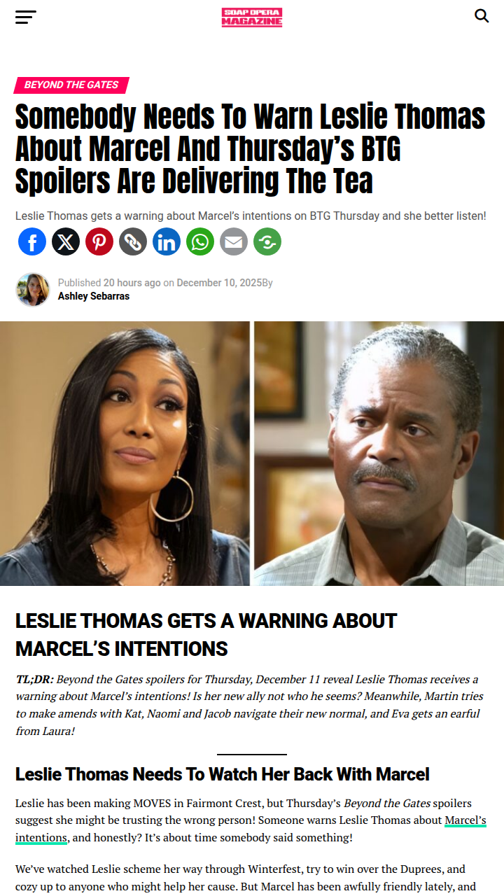 Henry Thomas+FollowLeslie’s trust issues could shake up Fairmont CrestLeslie Thomas is about to get a reality check in Fairmont Crest—someone finally warns her about Marcel’s true intentions, and it couldn’t come at a more dramatic time. With Leslie so caught up in her own plans, is she missing the fact that Marcel might be playing her? Meanwhile, Martin tries to patch things up with Kat, and Naomi and Jacob are figuring out their new normal. Thursday’s episode is packed with shifting alliances and big confrontations. Do you think Leslie will see Marcel’s game, or is she headed for trouble? Let’s hear your theories! #Entertainment #TVSeries #BeyondTheGates31Share