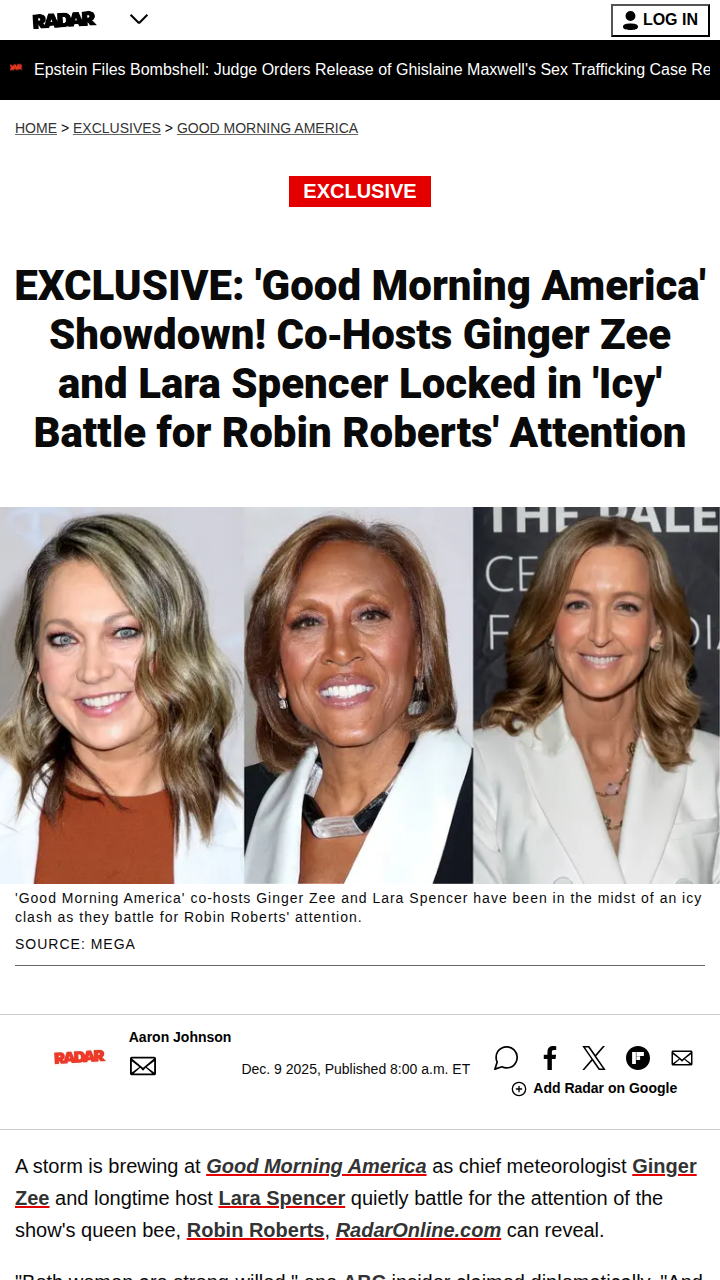 Henry Thomas+FollowGMA Co-Host Showdown Gets Frosty ❄️Word is, things are getting tense behind the scenes at Good Morning America! Ginger Zee and Lara Spencer are reportedly locked in a chilly rivalry, each trying to win over Robin Roberts. Insiders say the competition for Robin’s attention is heating up, with both women wanting to be her favorite. The control room even claims the studio feels colder during commercial breaks! Are we witnessing a new GMA power struggle? #Entertainment #TVSeries #GMA31Share